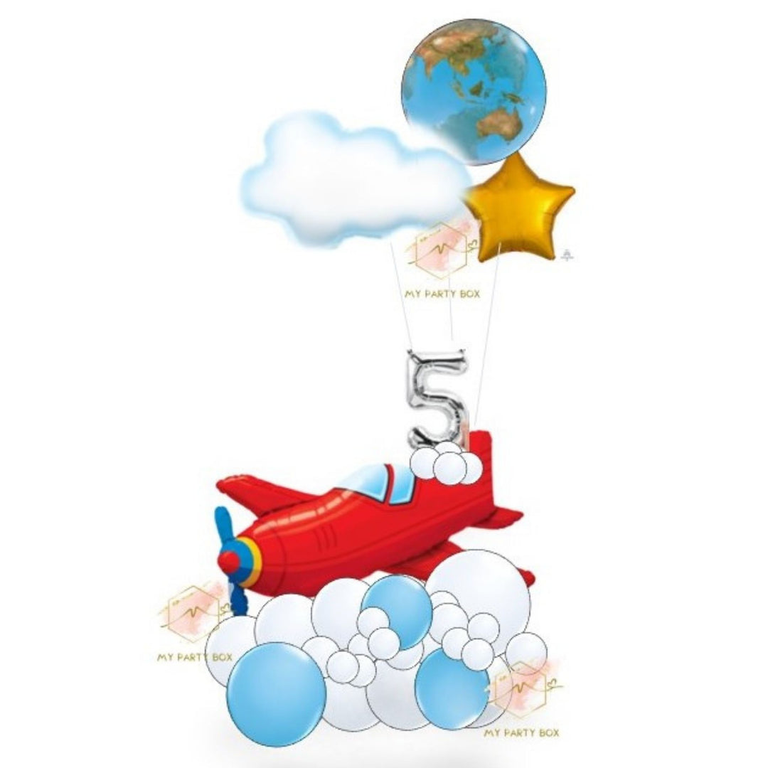 Hop onboard and fly away on a birthday adventure with a range of blue and white balloons, aeroplane balloon bouquets, as well as clouds and earth foil balloons all designed to re-create the fun and adventure of soaring through the clouds.